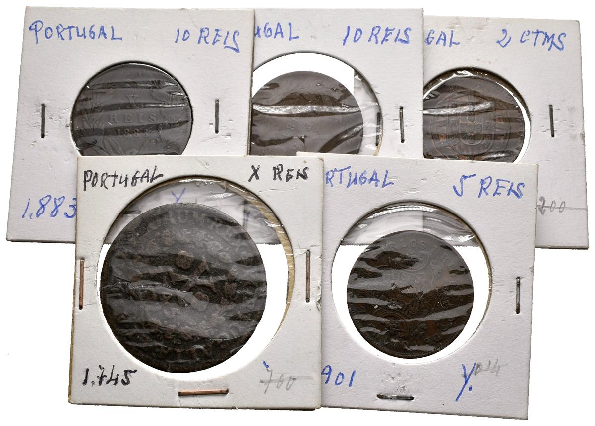 PORTUGAL. Lot of 5 coins from between the 18th and 20th centuries. 10 Reis from 1745 stand out. Different states of conservation. TO EXAMINE.