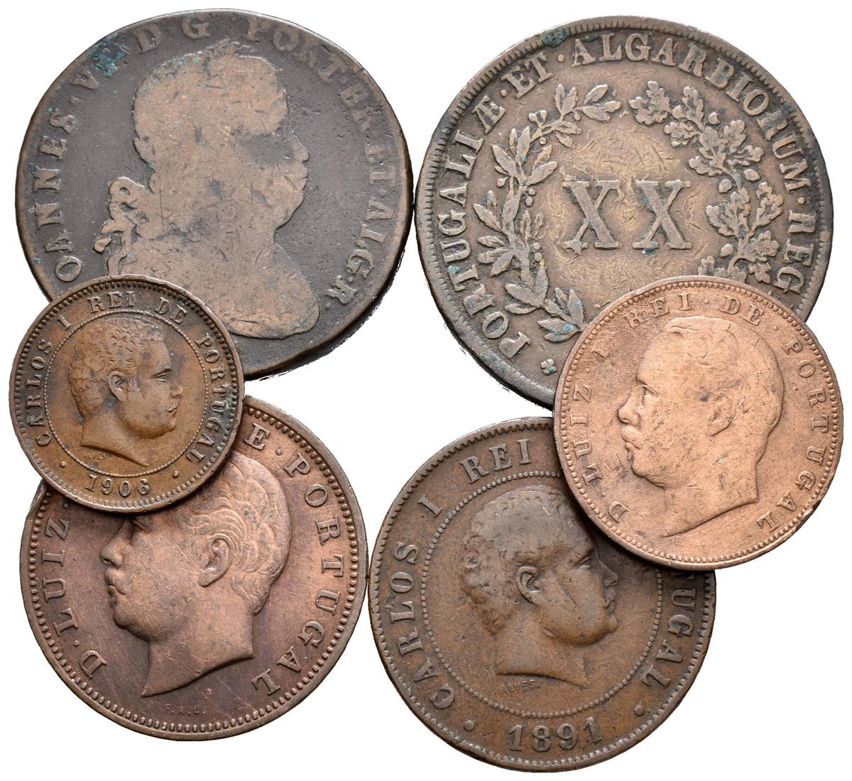 Lot consisting of 6 copper coins from Portugal from the 19th century and the beginning of the 20th century. Different states of conservation. To examine,