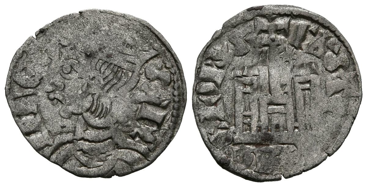 SANCHO IV (1284-1295). Cornado (Ve. 0.72g / 19mm). Murcia. (Bautista-431). Anv: Crowned bust on the left, around legend: SANCII REX. Rev: Castle with cross on central stem, between M and star, around legend: CASTELLE E LEGIONIS. VG.