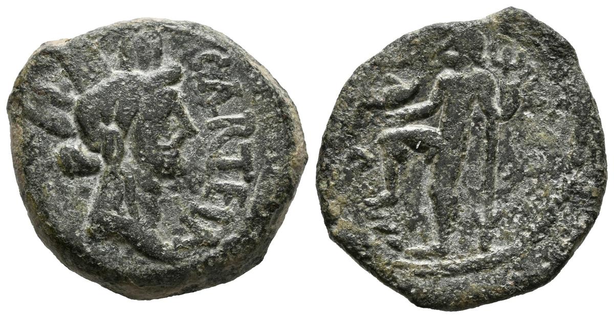 CARTEIA (San Roque, Cádiz). Semis. (Ae. 7.55g / 22mm). 27 BC-14 AD (FAB-662). Anv: Female head with mural crown on the right, front legend: CARTEIA- Rev: Neptune on the left, front D D. F.