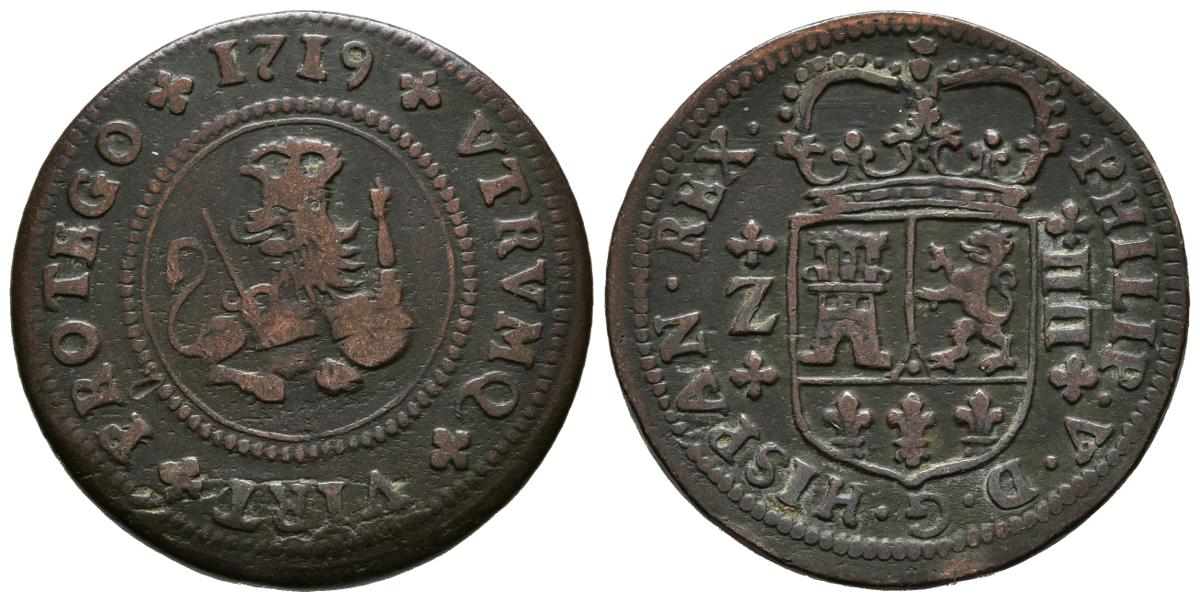 FELIPE V (1700-1746). 4 Maravedís (Ae. 8.04g / 26mm). 1719. Zaragoza. (Cal-2019-101). F.