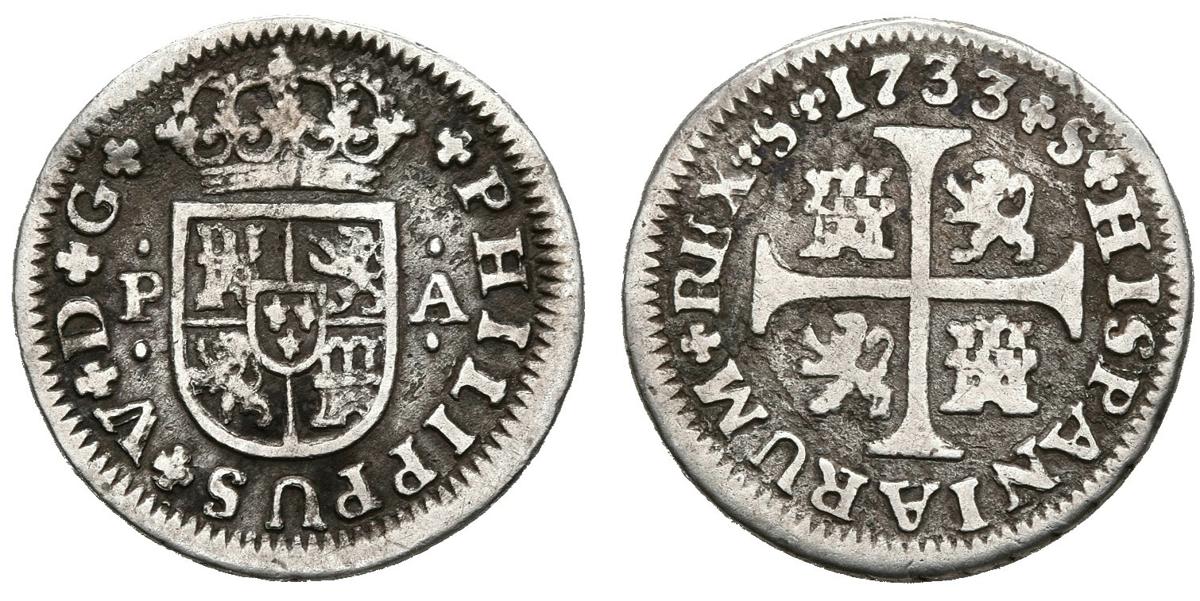 FELIPE V (1700-1746). 1/2 Real. (Ar. 1.22g / 14.5mm). 1733. Seville PA. (Cal-2019-339). F.