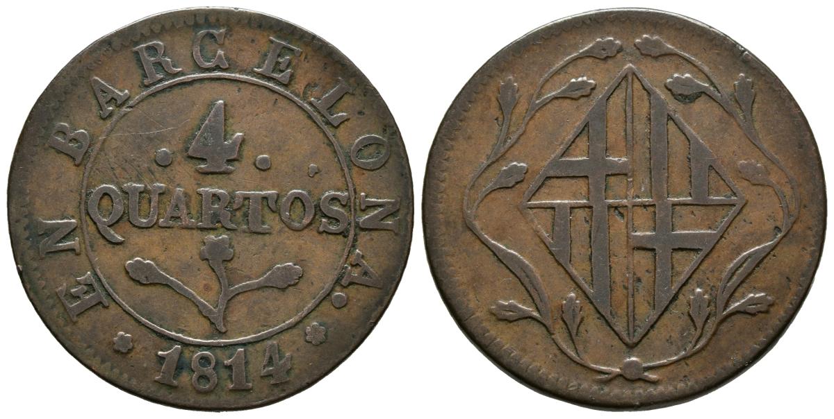 CATALONIA NAPOLEONICA (1808-1814). 4 rooms. (Ae. 7.98g / 29mm). 1814. Barcelona. (Cal-2019-22). F.