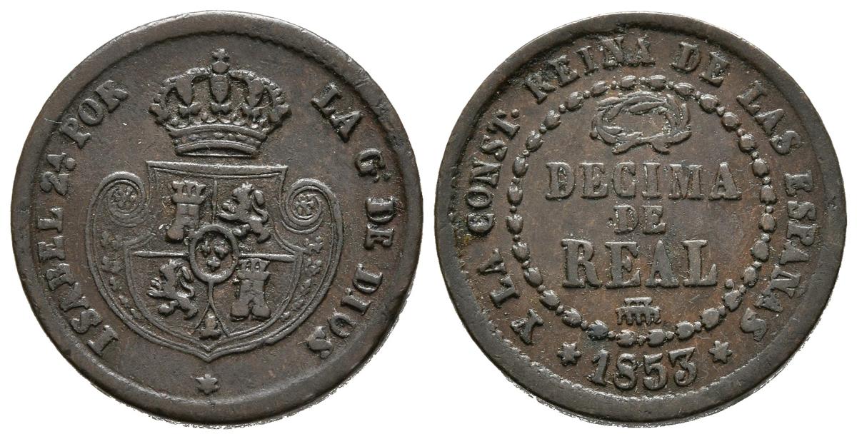 ISABEL II (1833-1868). Tenth of Real. (Ae. 4.13g / 19mm). 1853. Segovia. (Cal-2019-146). AU.