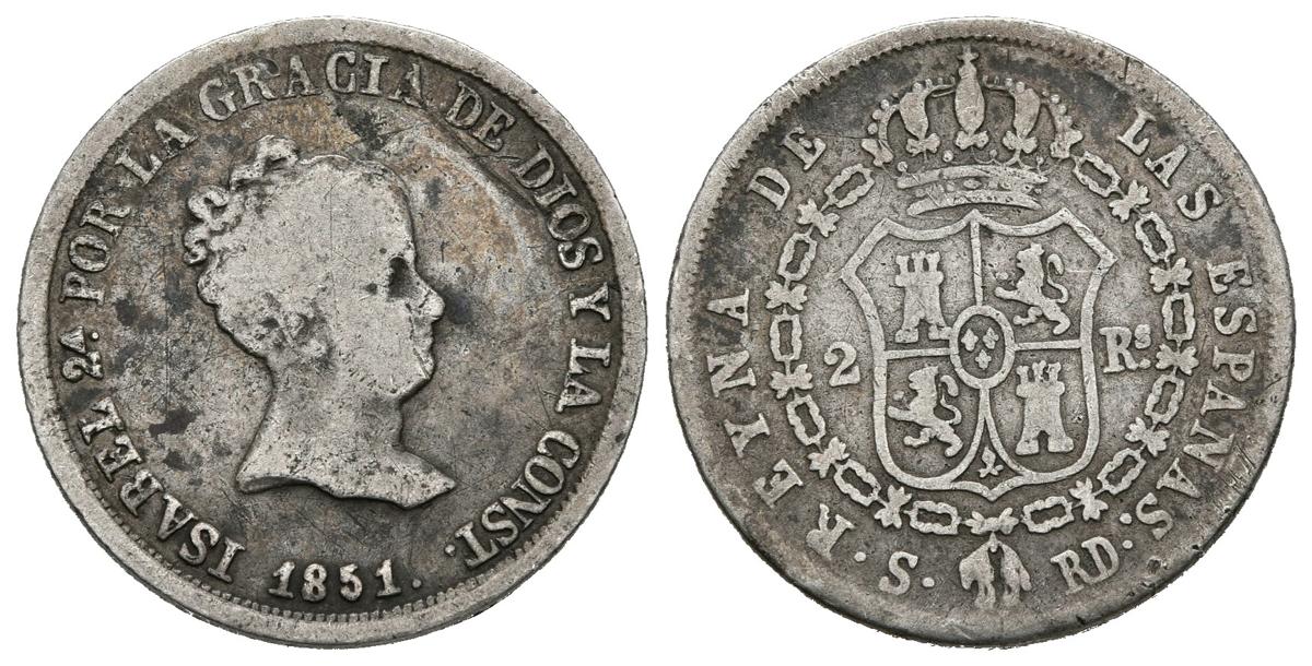 ISABEL II (1833-1868). 2 Reais (Ar. 2.45g / 18mm). 1851. Seville RD. (Cal-2019-388). BC + / VG.