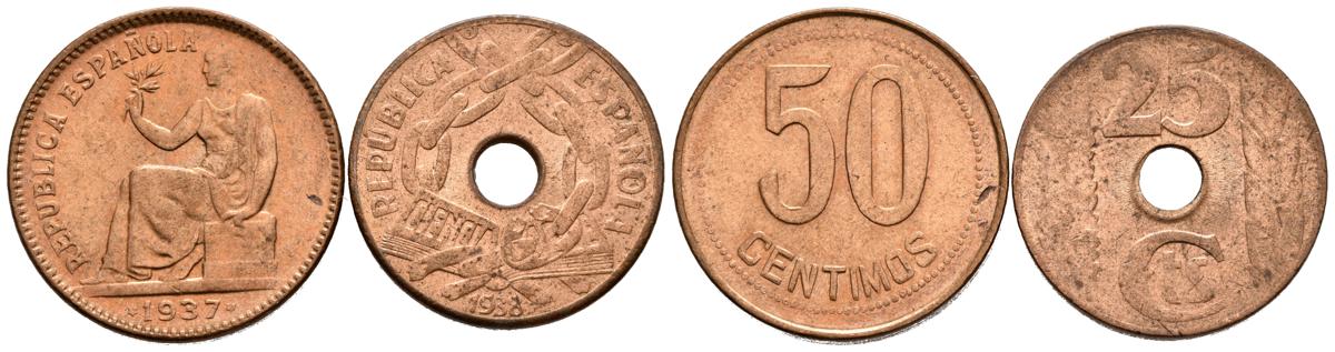 II REPUBLIC (1931-1939). Magnificent pair of coppers with values of 25 and 50 cents (the latter anepigraph). High degree of conservation. TO EXAMINE.