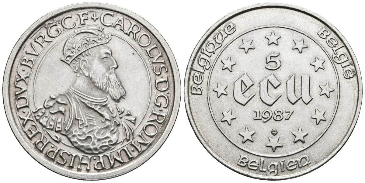 BELGIUM. 5 Ecu. (Ar. 22.67g / 37mm). 1987. 30th Anniversary of the Treaty of Rome. (Km # 166). UNC.