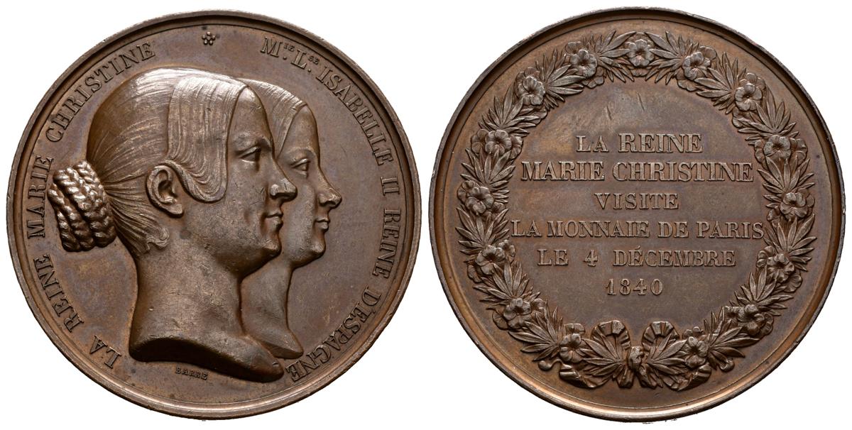 ISABEL II (1833-1868). Visit of the Regent Queen Mª Cristina and Isabel II to the Paris Mint. (Ae. 66.07g / 51mm). 1840. Engraver: Barre. (You Vives 369). Good Very Fine. Minimal marks.