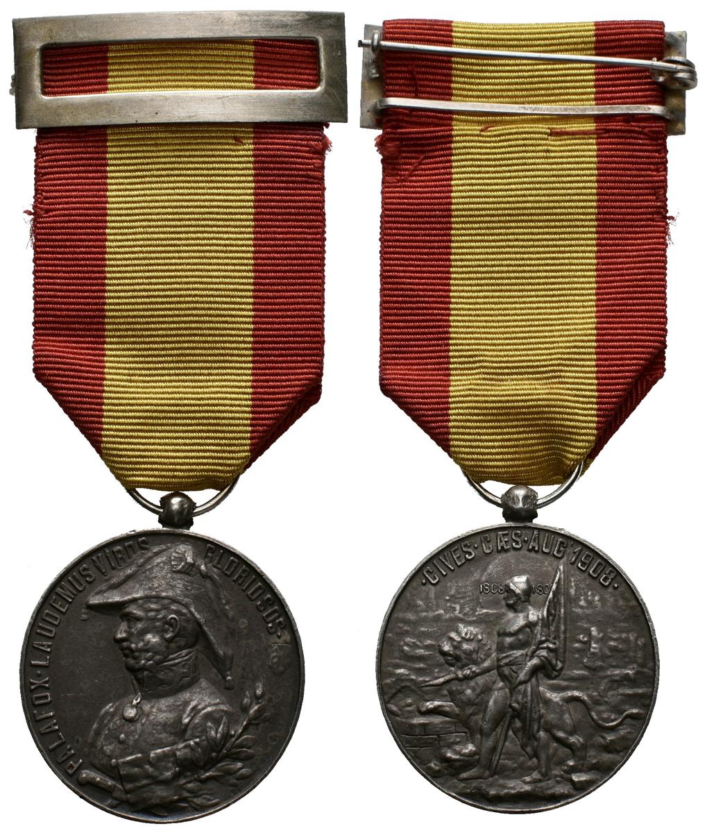 ALFONSO XIII (1885-1931). Centenary of the Sites of Zaragoza. (Ar. 16.59g / 30mm). 1908. Engraver: Palao. Molten silver. Modern ribbon and barrette. (You Vives 645 var). Very Fine.