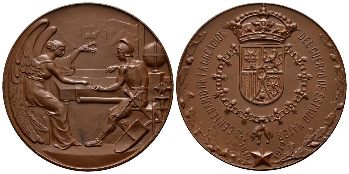 ALFONSO XIII (1874-1885). Centenary of the Creation of the General Staff Corps. (Ae. 89.49g / 55mm). 1910. Engraver: anonymous. (RAH 765). Extremely Fine.