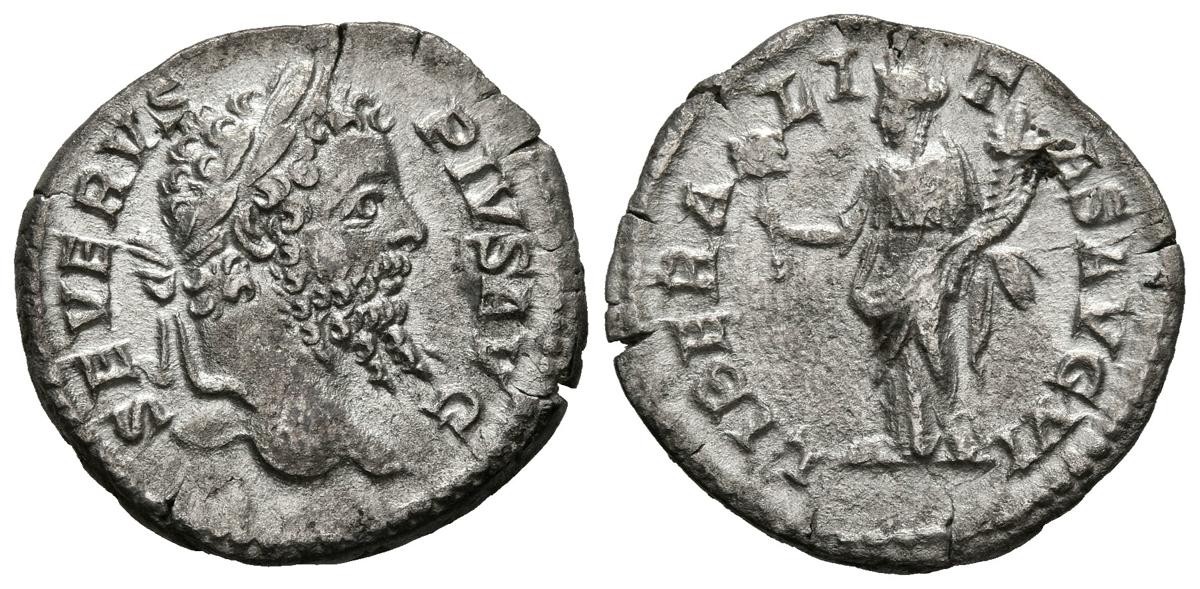 SEPTIMIUS SEVERUS. Denarius. (Ar. 2.02g / 19mm). 209 AD Rome. (RIC 278a). Obv: Laureate bust of Septimius Severus on the right, around legend: SEVERVS PIVS AVG. Rev: Liberalitas standing on the left carrying abacus and cornucopia, around legend: LIBERALITAS AVG VI. Very Fine.