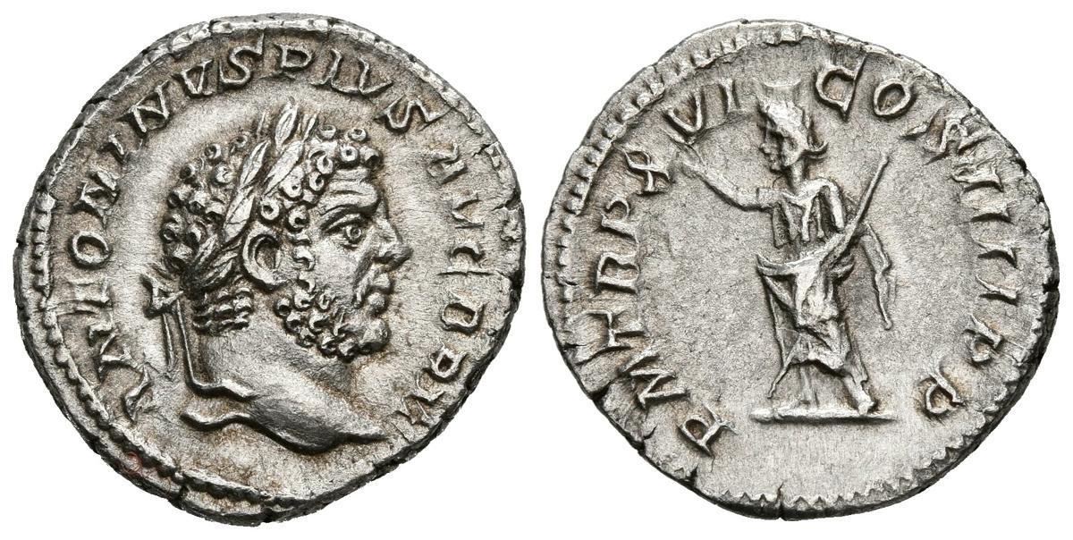 CARACALLA. Denarius. (Ar. 3.08g / 19mm). 213 AD Rome. (RIC 208a). Anv: Laureate bust of Caracalla on the right, around legend: ANTONINVS PIVS AVG BRIT. Rev: Serapis left standing raising right hand and holding scepter, around legend: PM TR P XVI COS IIII P P. Almost Extremely Fine.