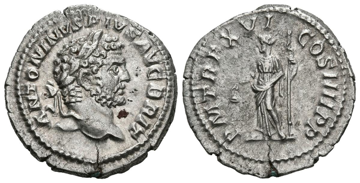 English CARACALLA. Denarius. (Ar. 3.29g / 20mm). 213 AD Rome. (RIC 209a). Anv. Laureate bust of Caracalla on the right, around legend: ANTONINVS PIVS AVG BRIT. Rev: Libertas standing on the left carrying crown and scepter, around legend: PM TR P XVI COS IIII P P. Almost Extremely Fine.