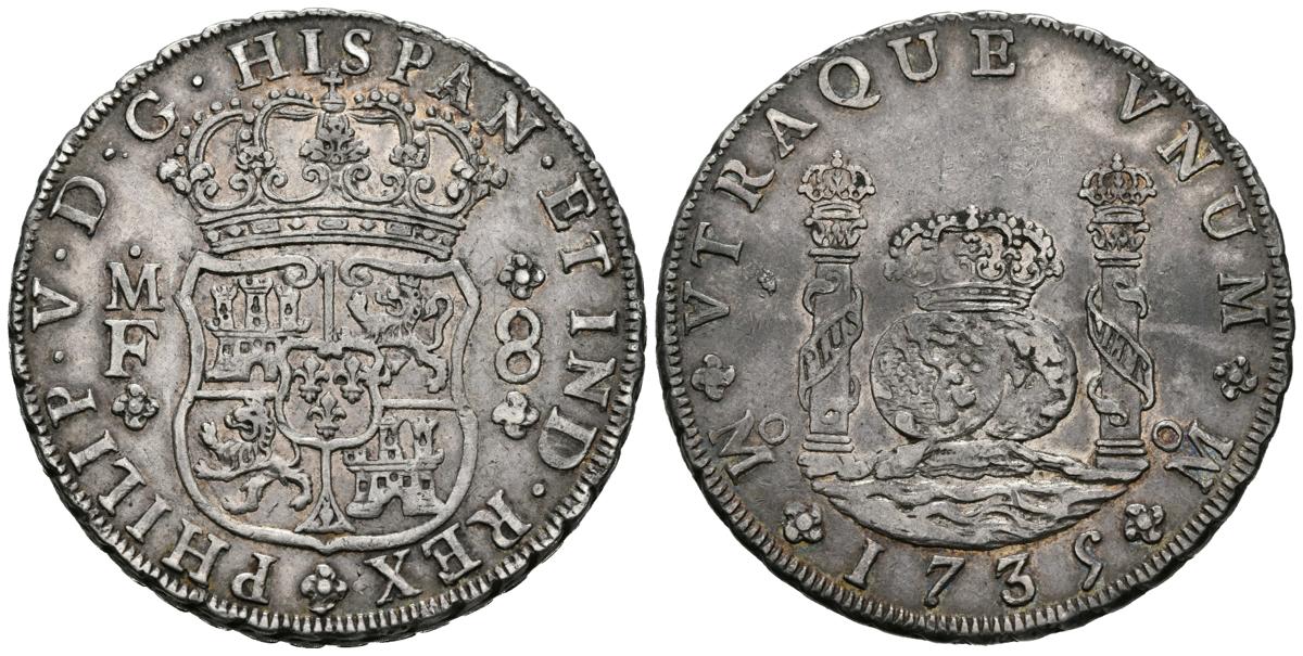 FELIPE V (1700-1746). 8 Reales. (Ar. 26.92g / 39mm). 1735. Mexico. MF. (Cal-2019-1443). Good Very Fine.