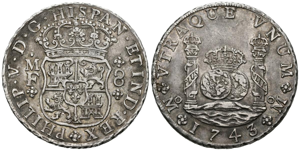 FELIPE V (1700-1746). 8 Reales. (Ar. 27.05g / 39mm). 1743. Mexico. MF. (Cal-2019-1463). Good Very Fine.