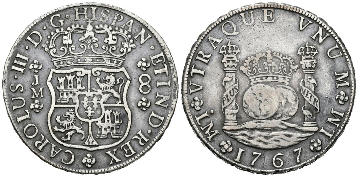 CARLOS III (1759-1788). 8 Reales. (Ar. 26.51g / 39mm). 1767. Lima. JM. (Cal-2019-1027). Very Fine/ Almost Very Fine.