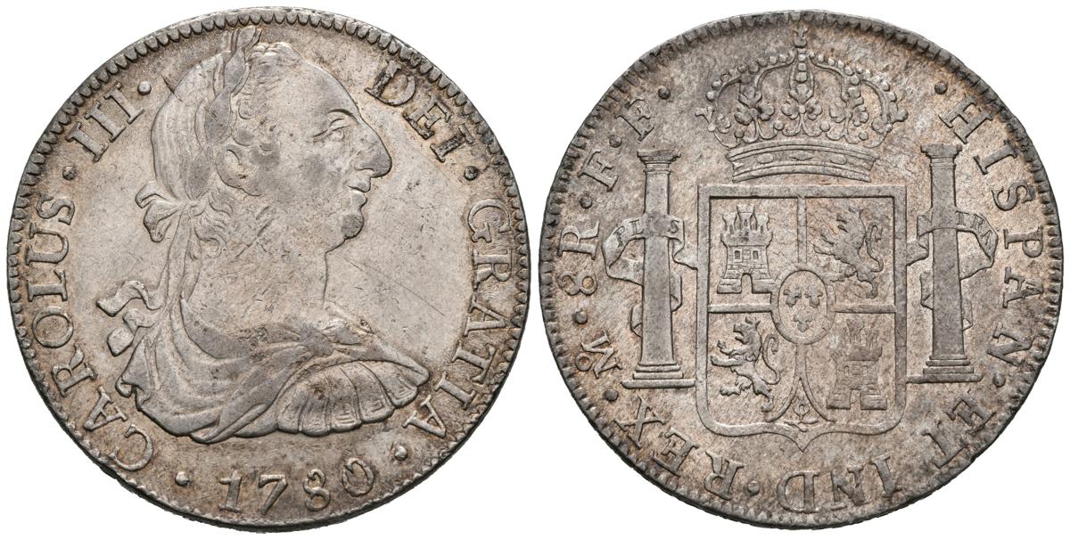 English CARLOS III (1759-1788). 8 Reales. (Ar. 26.67g / 39mm). 1780. Mexico. FF. (Cal-2019-1120). Good Very Fine