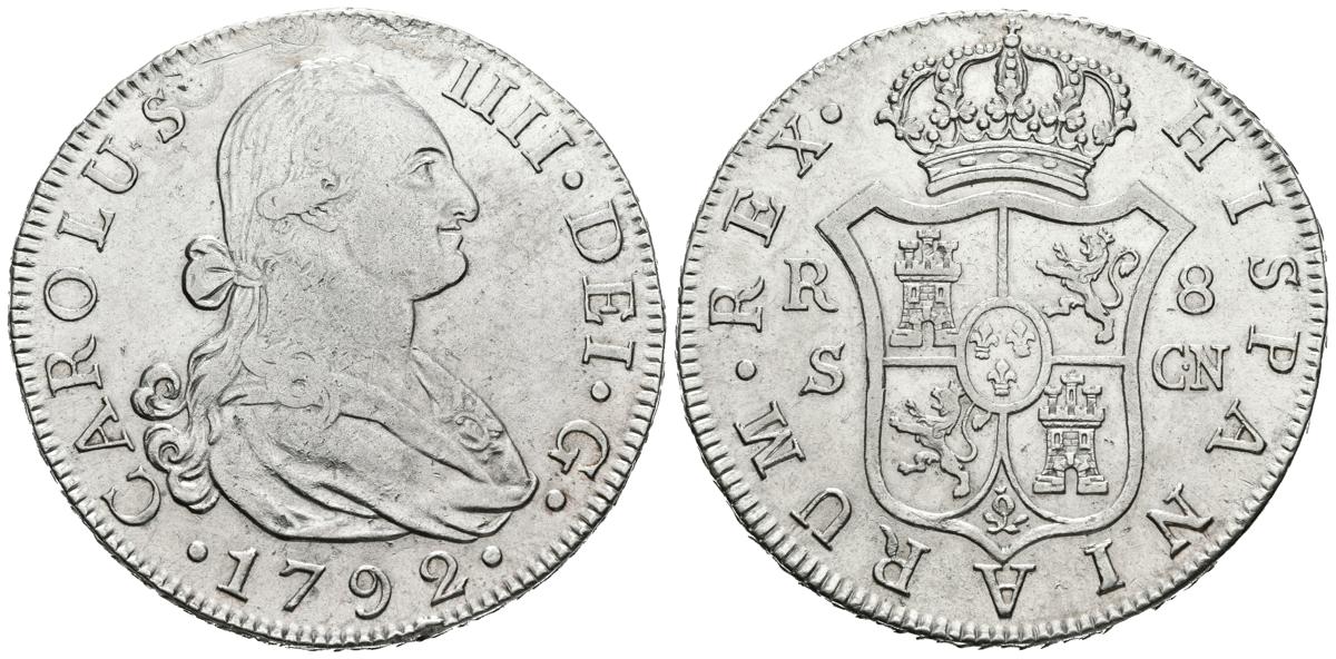 CARLOS IV (1788-1808). 8 Reales. (Ar. 27.01g / 39mm). 1792. Sevilla. CN. (Cal-2019-1055). Almost Extremely Fine. Obverse cleaned oxidations.