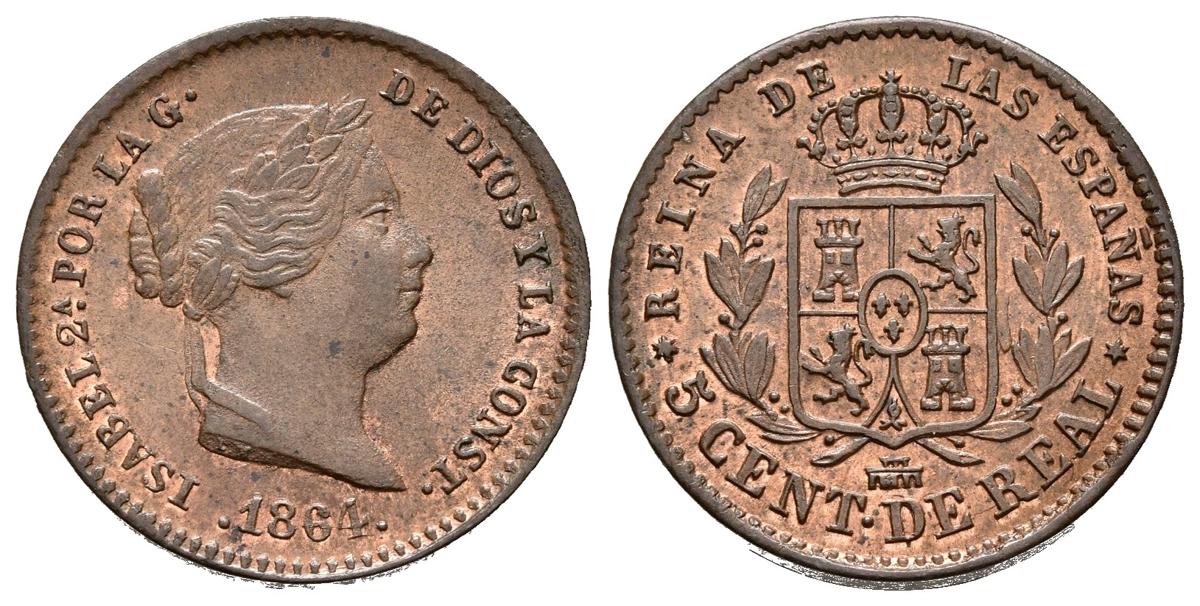 ISABEL II (1833-1868). 5 Céntimos de Real. (Ae. 2.07g / 17mm). 1864. Segovia. (Cal-2019-169). Good Extremely Fine. Remnants of original shine.