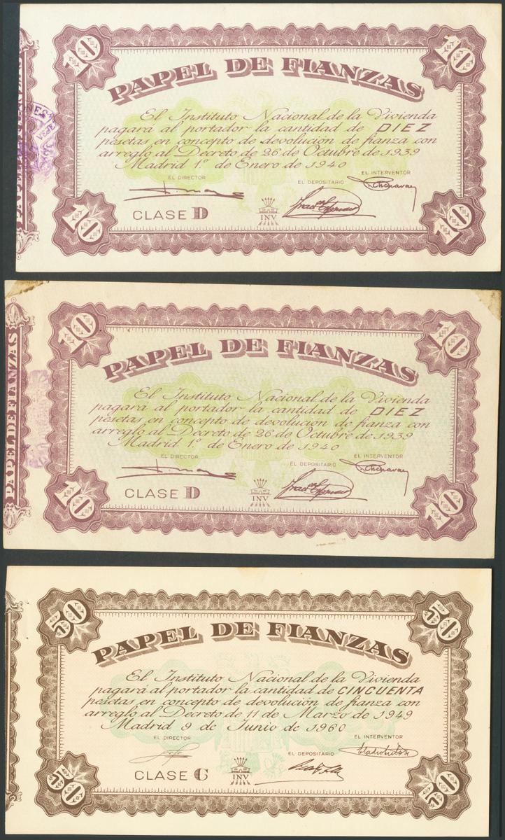 Set of 7 FINANCE PAPER banknotes of 10 Pesetas (2), 50 Pesetas (1), 100 Pesetas (3) and 500 Pesetas (1), issued between January 1, 1940 and February 1, 1962. Extremely Fine/ Very Fine.