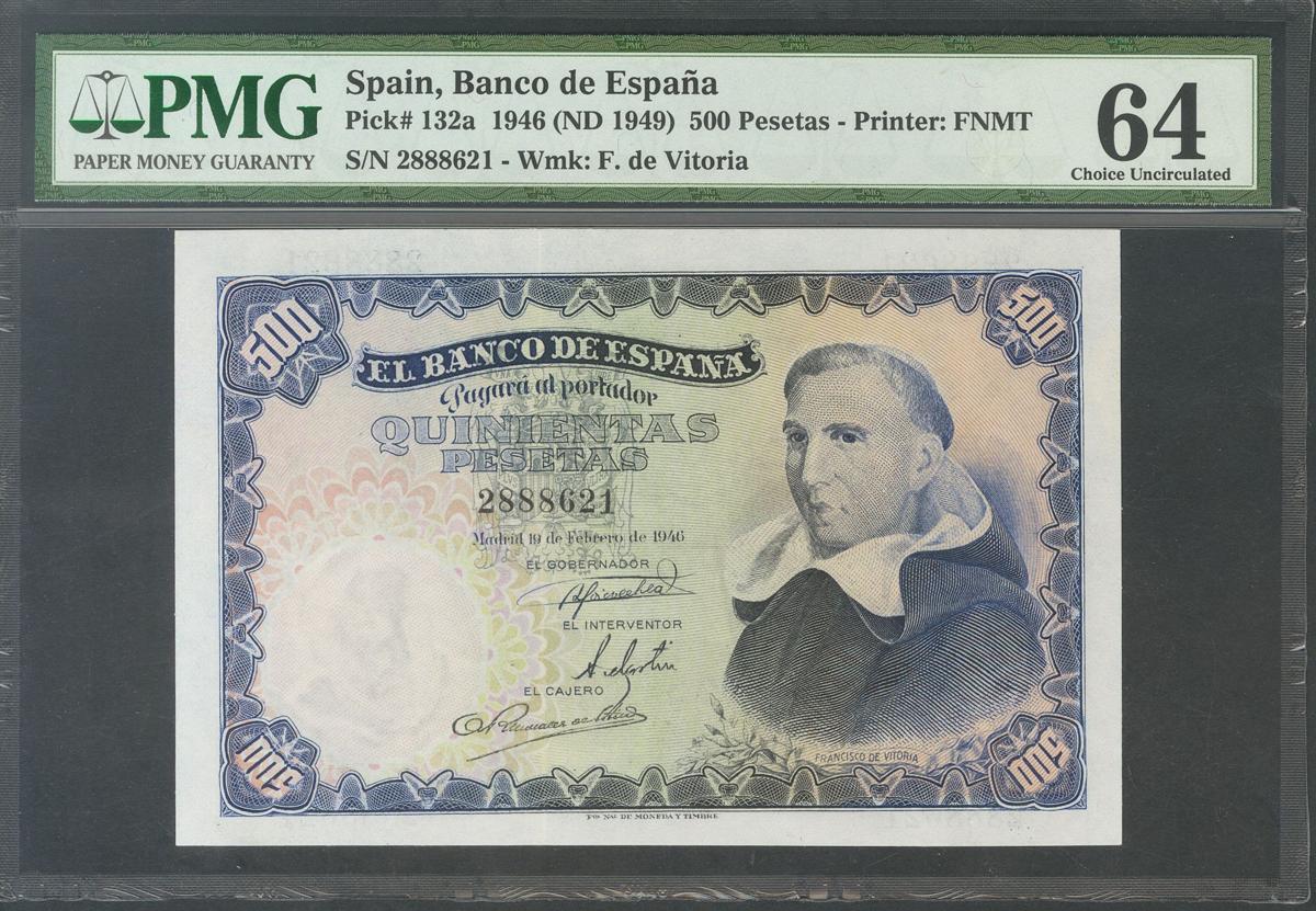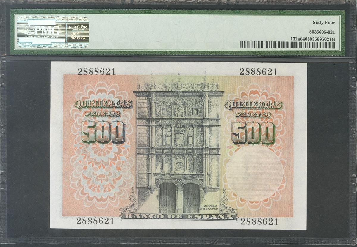 500 pesetas. February 19, 1946. (Edifil 2017: 452). Uncirculated. PMG64 package.