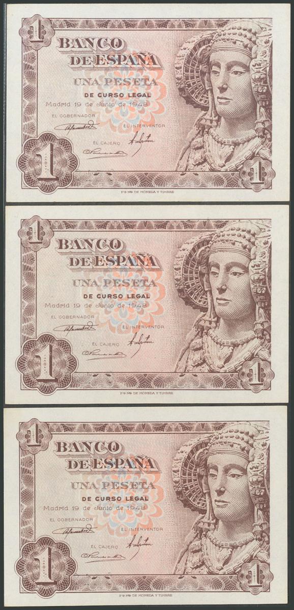 English 1 peseta. June 19, 1948. Correlative trio. Series G. (Edifil 2017: 457a). Uncirculated/ Almost Uncirculated.