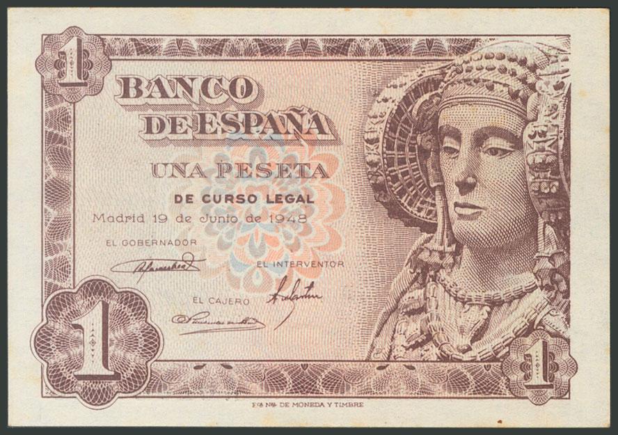 1 peseta. June 19, 1948. Series Ñ. (Edifil 2017: 457a). Almost Uncirculated.