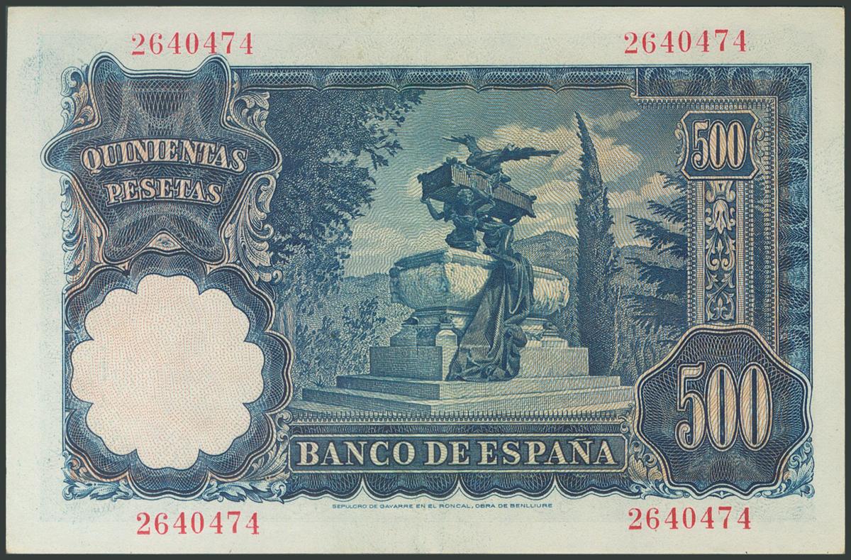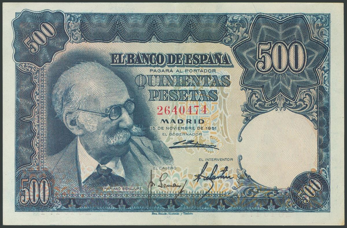 500 pesetas. November 15, 1951. Without series. (Edifil 2017: 460). It keeps all the original sizing. Good Extremely Fine.