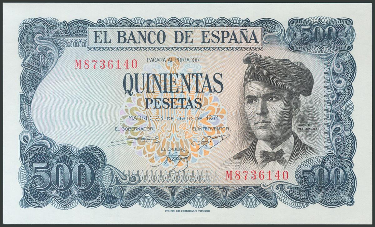500 pesetas. July 23, 1971. Series M. (Edifil 2017: 473a). Almost Uncirculated.