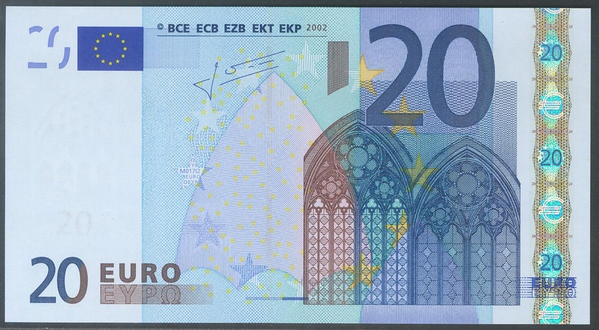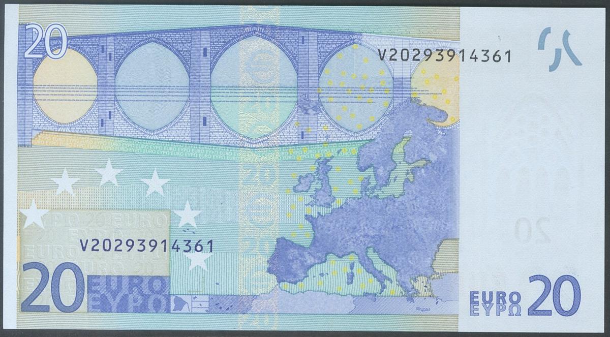 English 20 euros. January 1, 2002. Trichet signature. Series V (Spain). (Edifil 2017: 488A). Uncirculated.