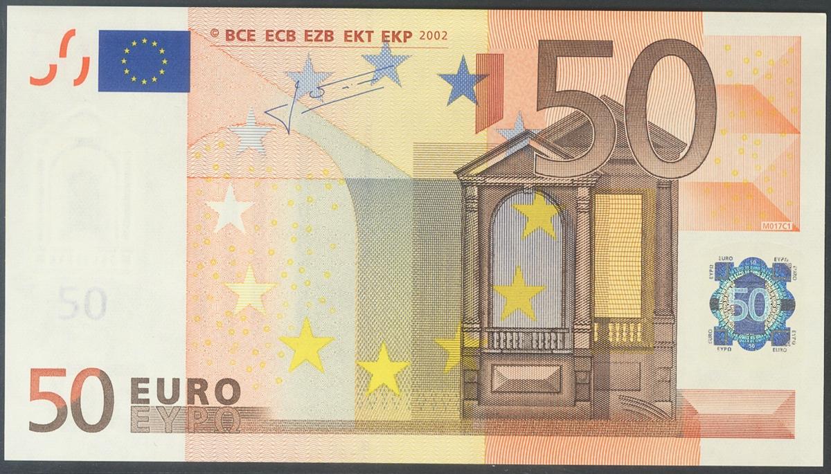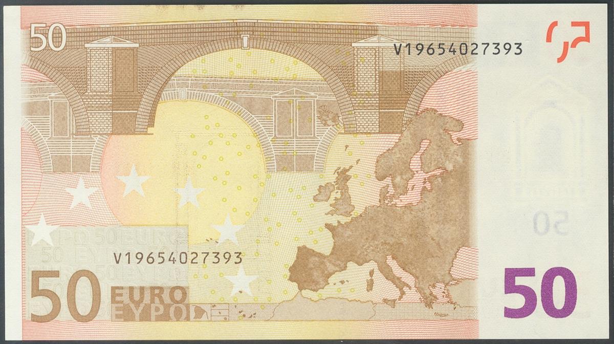 50 euros. January 1, 2002. Trichet signature. Series V (Spain). (Edifil 2017: 489A). Uncirculated.