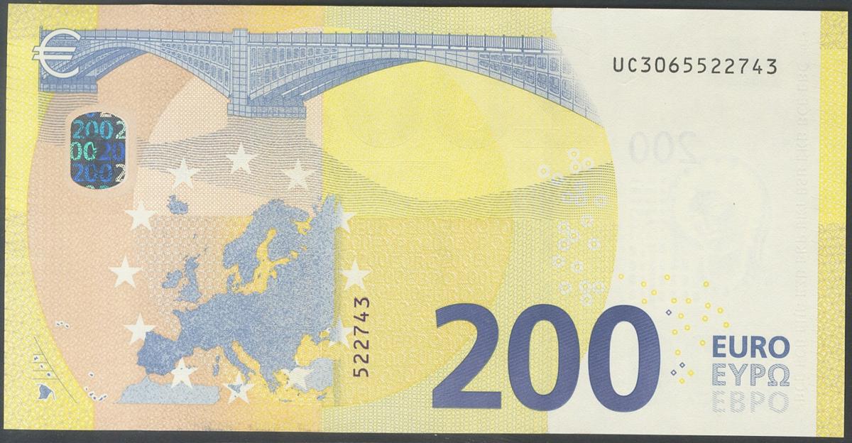 200 euros. (2019ca). Draghi signature. UC Series (France). Not listed in Edifil. Uncirculated.