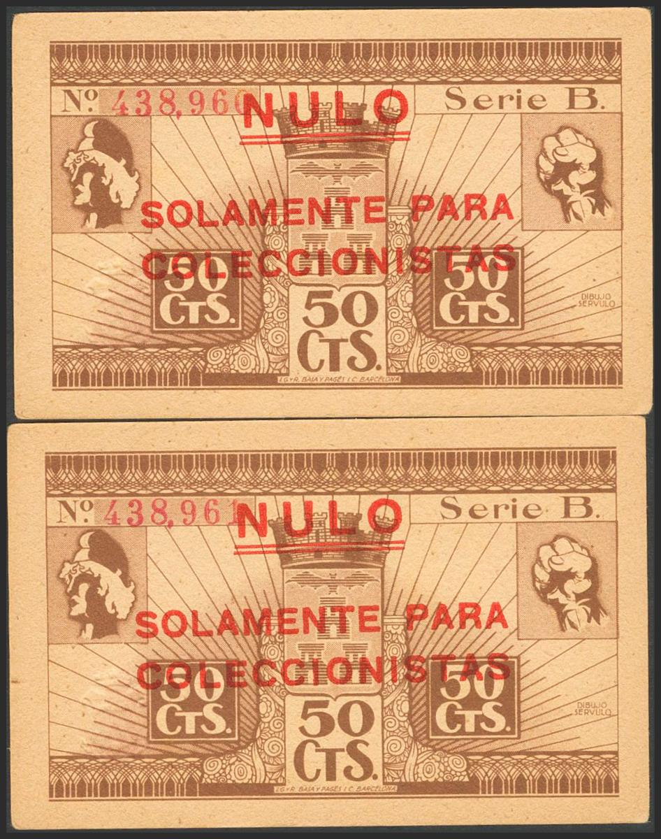 ALBACETE. 50 cents. November 8, 1937. Correlative pair. Buffer "Null only for collectors". Series B. (González: 131). Uncirculated.