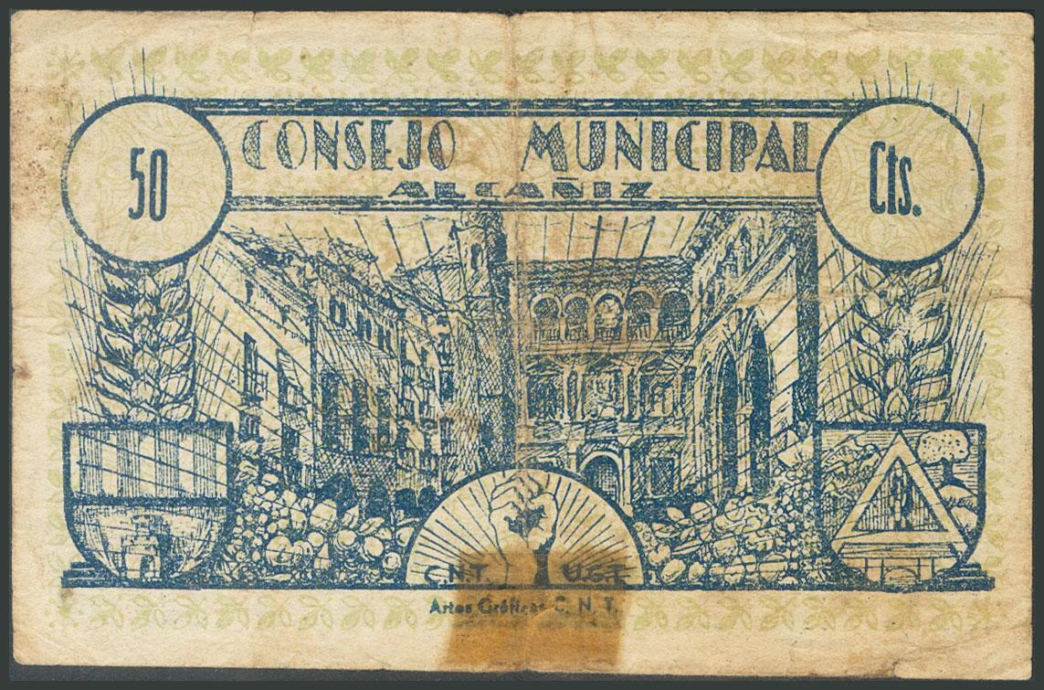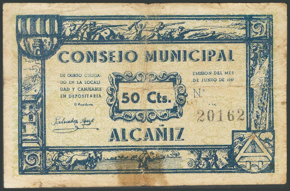 ALCAÑIZ (TERUEL). 50 cents. June 1937. (González: 297). Fine.