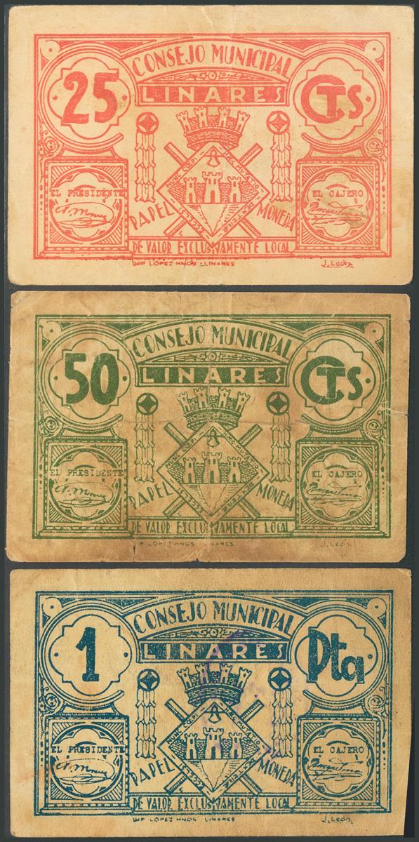 LINARES (JAEN). 25 Cents, 50 Cents and 1 Peseta. (1937ca). (González: 3161/63). Unusual complete series. Very Fine.