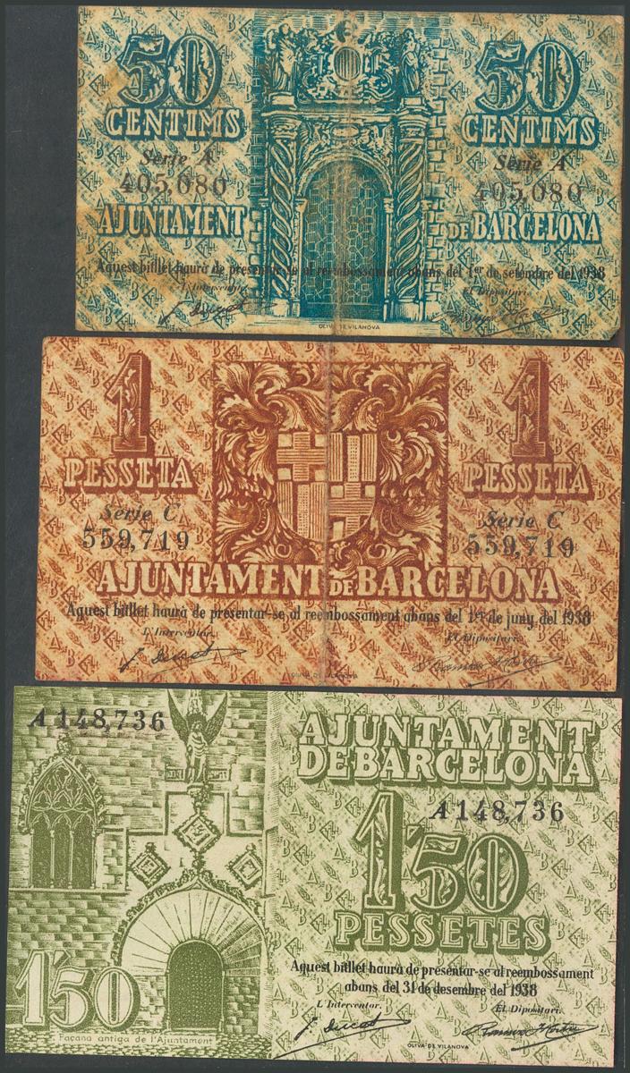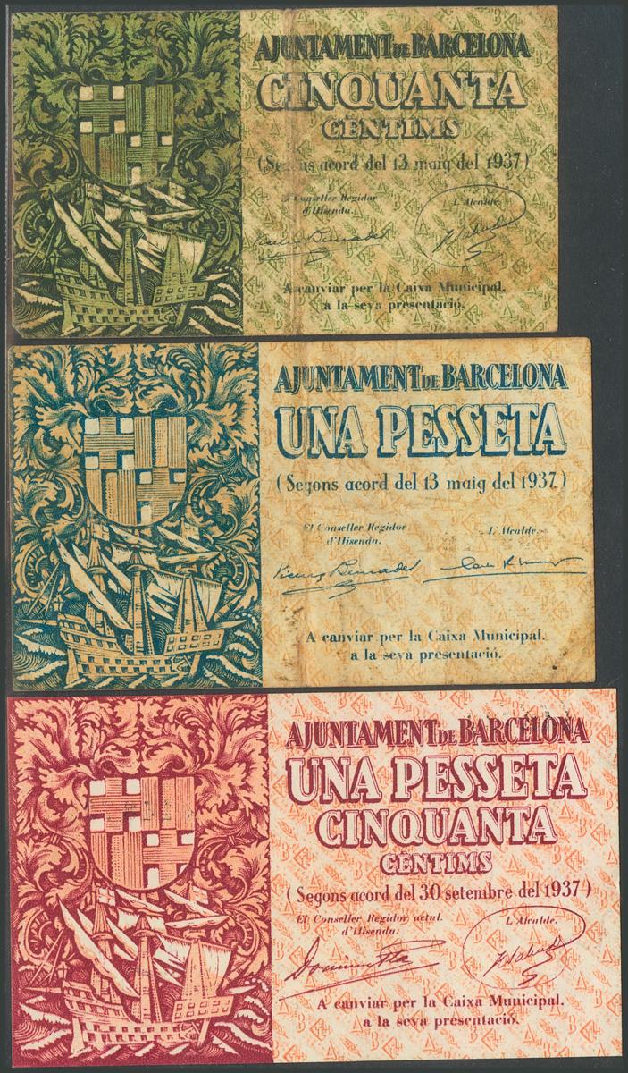 BARCELONA. 50 Cents, 1 Peseta and 1´50 Pesetas. May 13, 1937 and September 30, 1937 the 1'50 pts. Series A, D and B, respectively. (González: 6520/22). Almost Extremely Fine/ Fine.