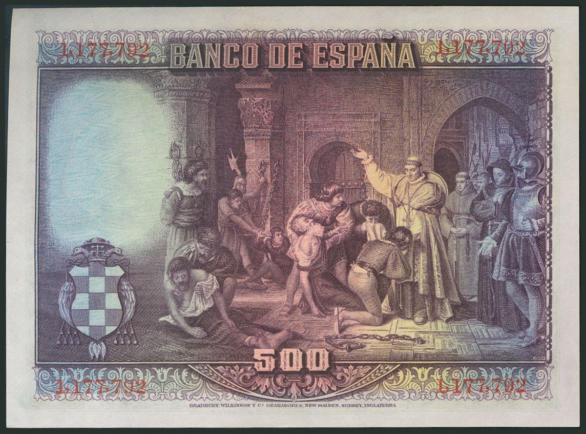 English 500 pesetas. August 15, 1928. Without series. (Edifil 2017: 356). It keeps all its original size. Uncirculated.
