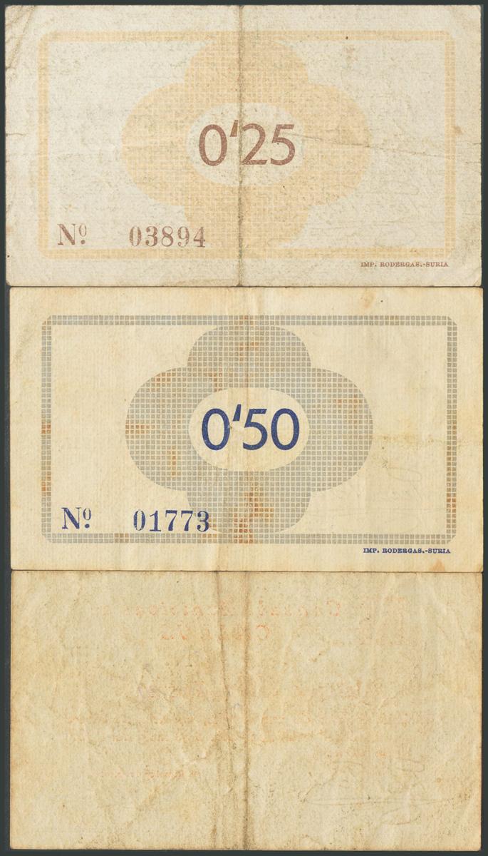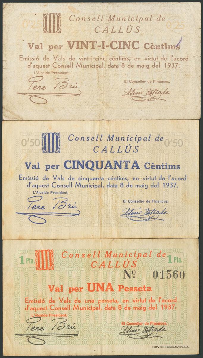 English CALLUS (BARCELONA). 25 Cents, 50 Cents and 1 Peseta. May 8, 1937. (González: 7297/99). Unusual complete series. Good Very Fine.