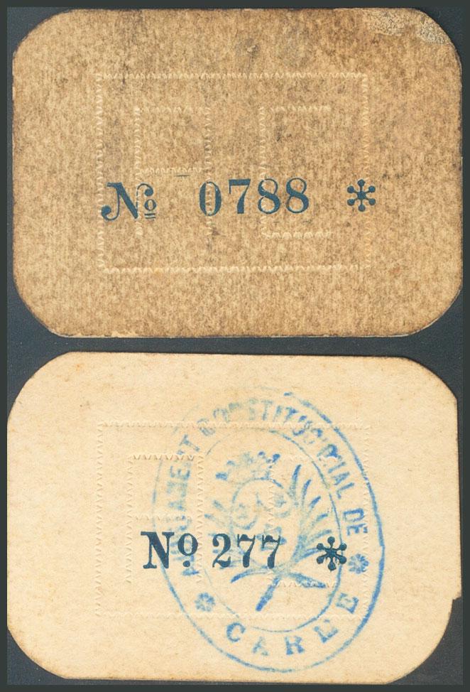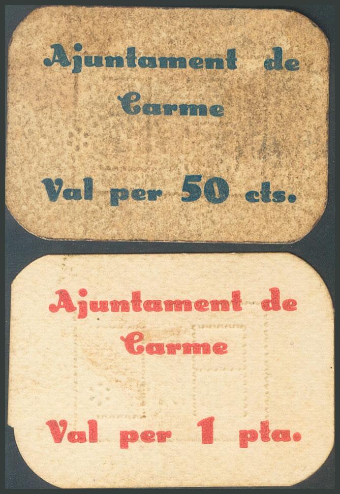English CARME (BARCELONA). 50 Cents and 1 Peseta. (González: 7399/00). Rare Very Fine/ Extremely Fine.