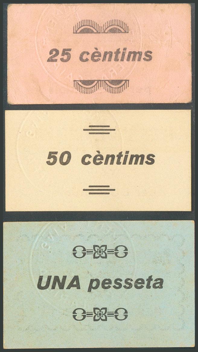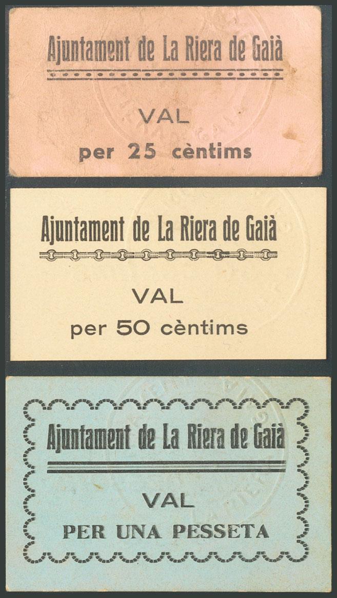 THE RIERA DE GAIA (TARRAGONA). 25 Cents, 50 Cents and 1 Peseta. (1938ca). (González: 9639/41). Rare complete series. Extremely Fine.