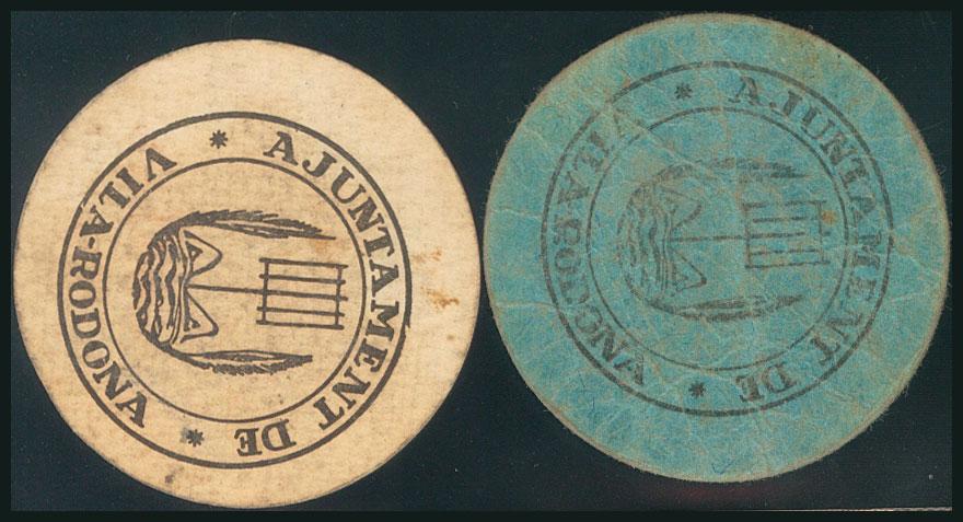 English VILA-RODONA (TARRAGONA). 5 Cents and 10 Cents. November 15, 1937. (González: 10664/65). Rare complete series. Good Very Fine.