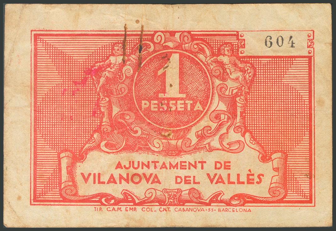 VILANOVA DEL VALLES (BARCELONA). 1 peseta. (1938ca). (González: 10830). Rare Good Fine.