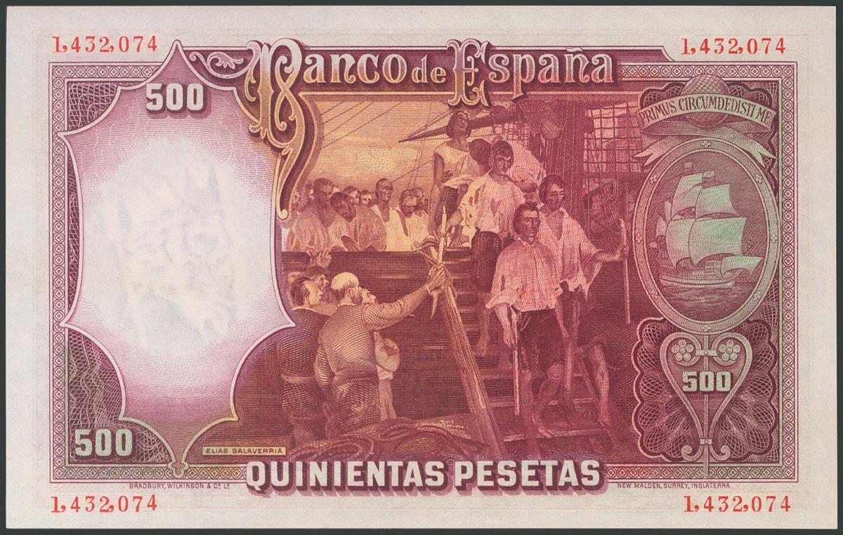 500 pesetas. April 25, 1931. (Edifil 2017: 361). Original sizing. Uncirculated.