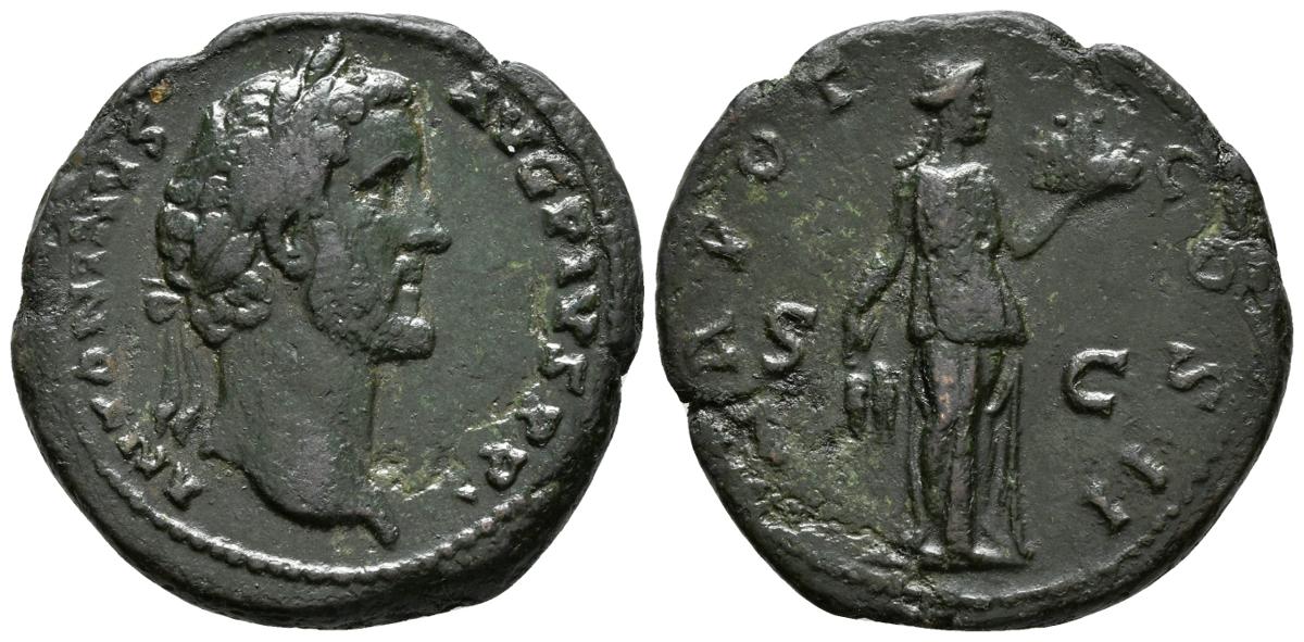 ANTONINO PIO. As. 138-161 d.C. Roma. A/ Busto laureado a derecha. ANTONINUS - AVG PIVS P P. R/ Fides estante a derecha portando cesto de frutas y espigas. TR POT COS II S-C. RIC - BMC 1164. Ae. 10,40g. MBC.