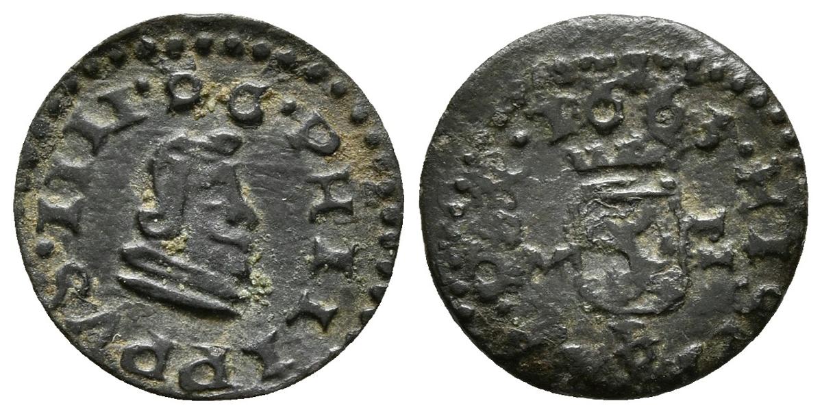 FELIPE IV. 2 Maravedís. 1663. Trujillo M. Cal-1655; J.S. M-777. Ae. 0,50g. MBC+/MBC-. Escasa.