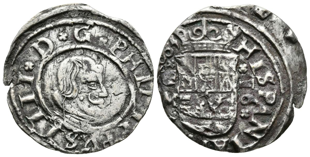 FELIPE IV. 16 Maravedís. 1663. Valladolid M. Jirones abiertos a derecha. Cal-1672; J.S. M-806. Ae. 3,34g. Conserva gran parte del plateado original. MBC-.