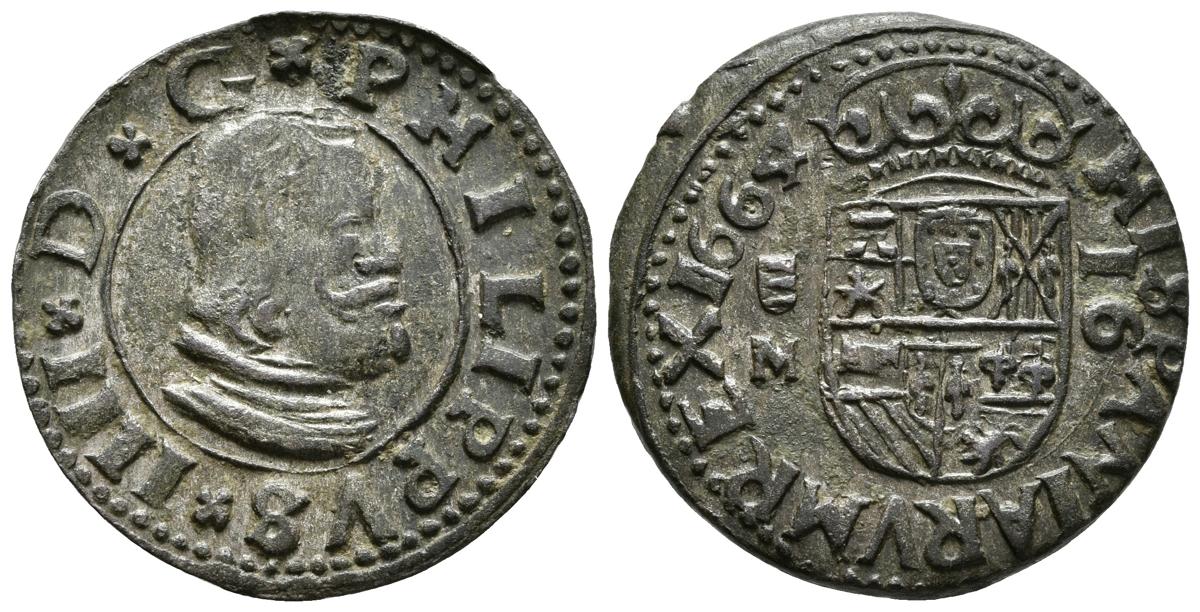 FELIPE IV. 16 Maravedís. 1664. Valladolid M. Jirones abiertos a izquierda. Cal-1674; J.S. M-824. Ae. 4,55g. MBC.
