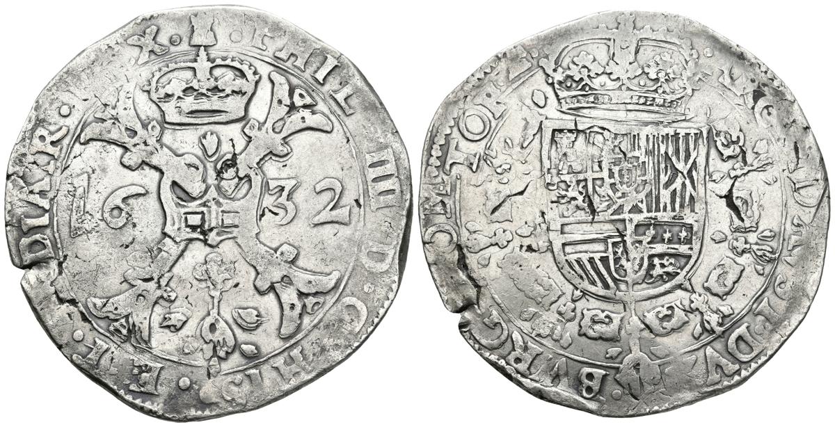 FELIPE IV. 1 Patagón. 1632. Tournai. Vti. 1119; Vanhoudt 645.TO; Van Gelder & Hoc 329-9. Ar. 27,79g. MBC.