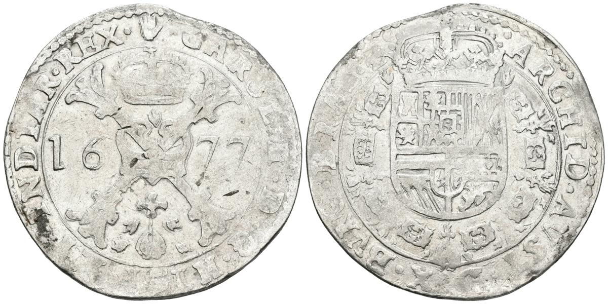 CARLOS II. 1 Patagón. 1677. Amberes. Vti. 396; Vanhoudt 698.AN; Van Gelder & Hoc 350-1a. Ar. 27,22g. MBC+.