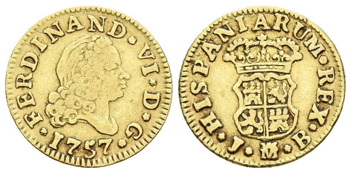 FERNANDO VI. 1/2 Escudo. 1757. Madrid JB. Cal-255. Au. 1,73g. BC+.